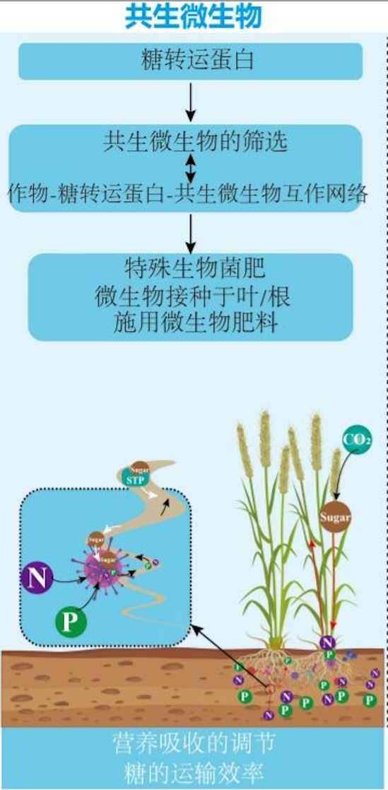 首先,增強(qiáng)糖轉(zhuǎn)運蛋白與共生微生物的相互作用是提高作物產(chǎn)量的重要策略之一。互惠微生物宛如一群微小卻神通廣大的“精靈”,與植物締結(jié)了緊密且精妙的共生契約?;セ菸⑸锟梢詾橹参锾峁└嗟臓I養(yǎng)物質(zhì)如氮、磷、鉀;植物則為微生物提供更多的糖分,二者互利共贏。糖轉(zhuǎn)運蛋白就像互惠微生物的“補(bǔ)給車”,負(fù)責(zé)它的能量補(bǔ)給。通過這一策略,可以幫助植物更好地吸收土壤中的養(yǎng)分,比如磷和氮。這就像給植物吃了“營養(yǎng)補(bǔ)品”,讓它們長得更壯實。