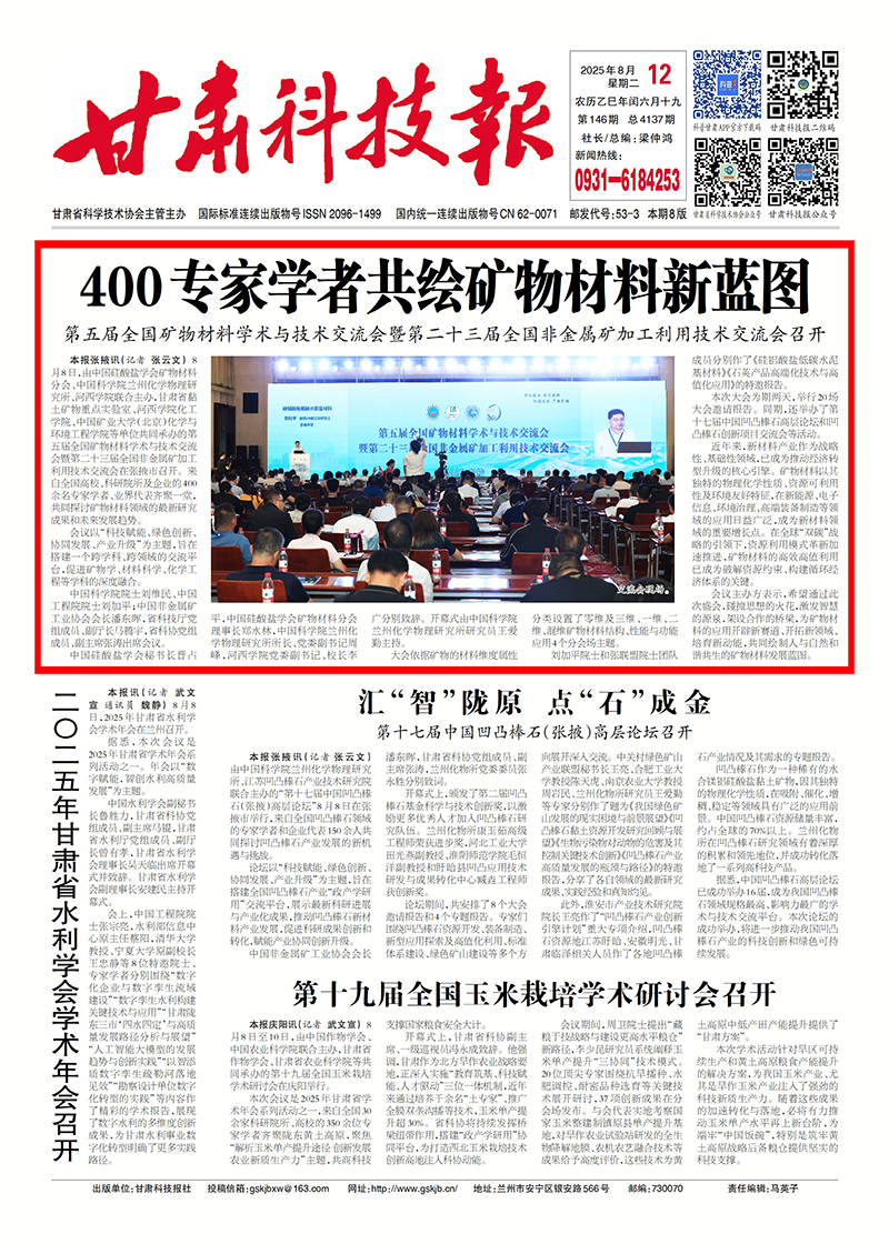 【甘肅科技報】第五屆全國礦物材料學(xué)術(shù)與技術(shù)交流會召開 400專家學(xué)者共繪礦物材料新藍圖