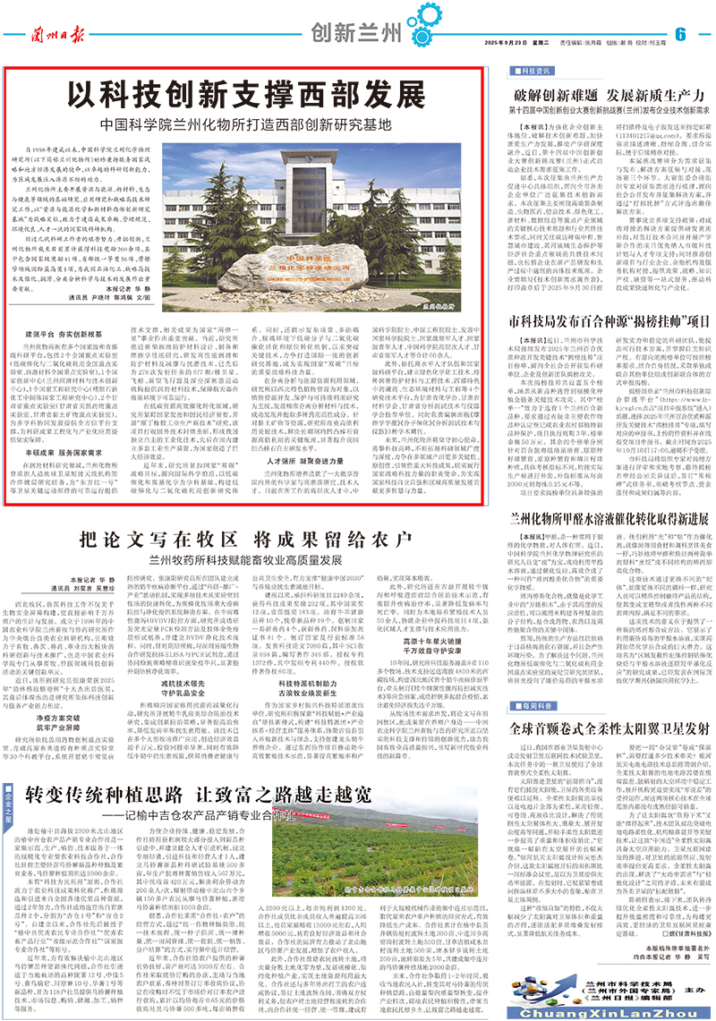 【蘭州日報】以科技創(chuàng)新支撐西部發(fā)展?中國科學(xué)院蘭州化物所打造西部創(chuàng)新研究基地