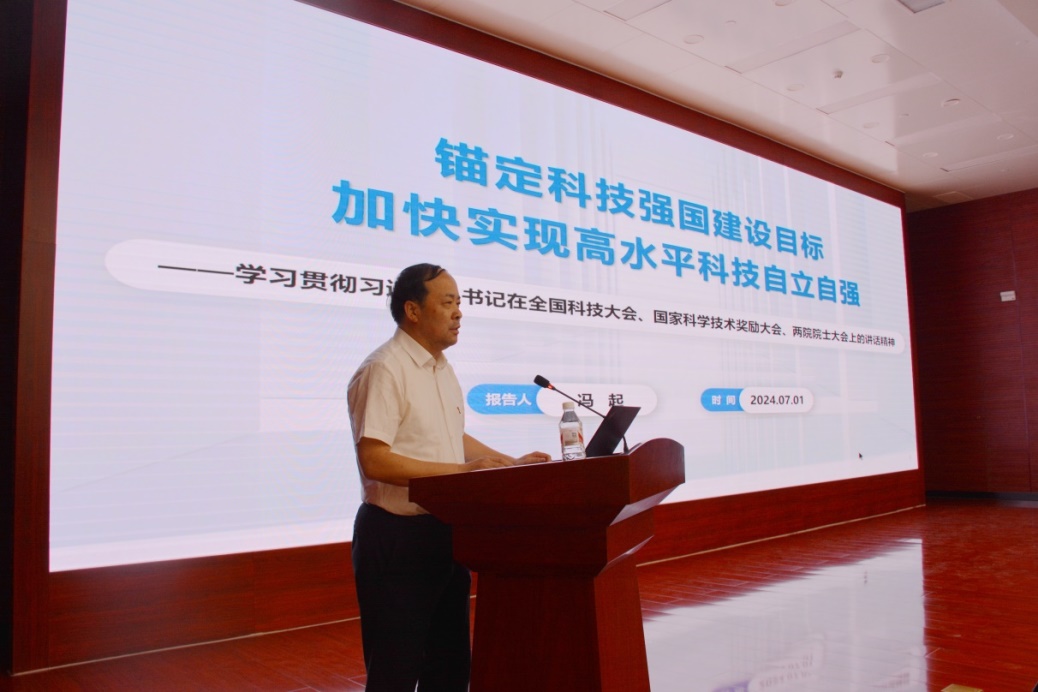 院長(zhǎng)馮起傳達(dá)學(xué)習(xí)了習(xí)近平總書(shū)記重要講話精神和全國(guó)科技大會(huì)精神,作了《錨定科技強(qiáng)國(guó)建設(shè)目標(biāo) 加快實(shí)現(xiàn)高水平科技自立自強(qiáng)》專題報(bào)告。他強(qiáng)調(diào),全體黨員干部要牢記國(guó)家戰(zhàn)略科技力量職責(zé)定位,面向國(guó)家重大戰(zhàn)略需求和科技前沿,持續(xù)凝練并推動(dòng)重大科技任務(wù)攻關(guān),自覺(jué)把科研追求融入建設(shè)科技強(qiáng)國(guó)的偉大事業(yè)中,將學(xué)習(xí)成果轉(zhuǎn)化為建設(shè)科技強(qiáng)國(guó)的強(qiáng)大動(dòng)力和生動(dòng)實(shí)踐,推動(dòng)各項(xiàng)工作不斷取得新的更大的成績(jī)。