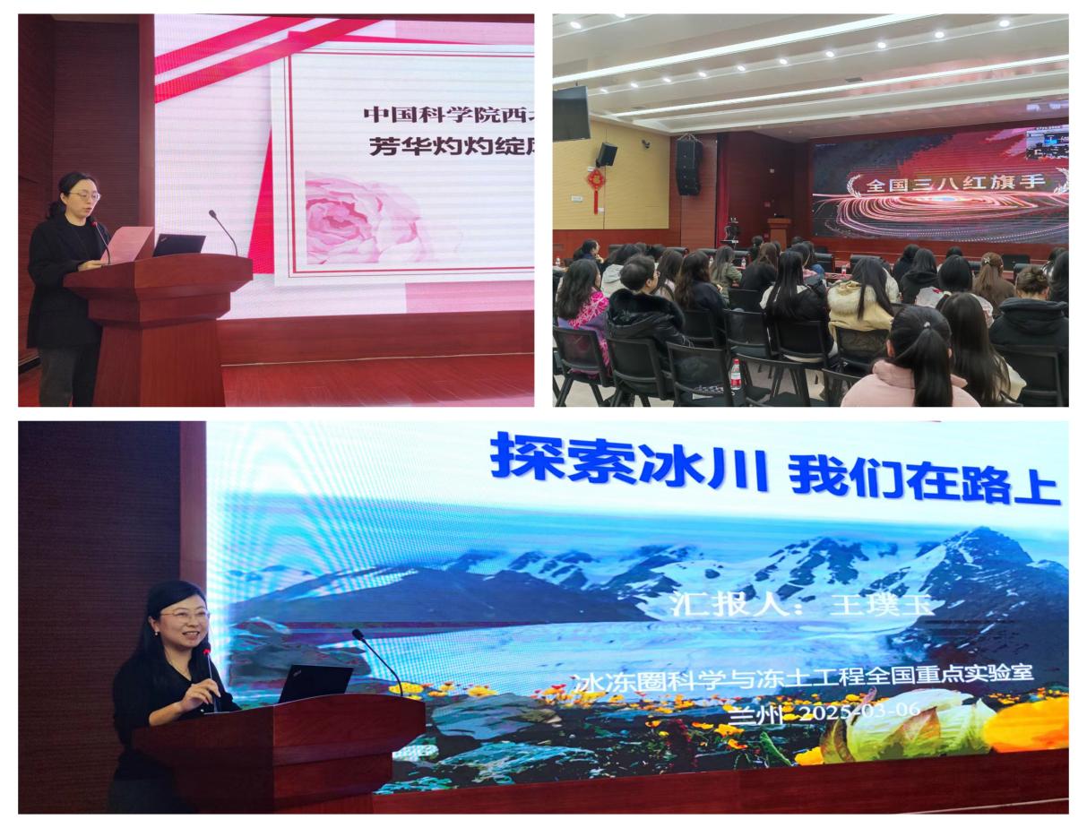 3月6日,婦委會組織女職工、女研究生集中觀看了中國科學(xué)院“搶占科技制高點(diǎn) 巾幗建功助攻堅”先進(jìn)事跡報告會,聆聽了2024年度全國三八紅旗手、全國巾幗文明崗、中央和國家機(jī)關(guān)三八紅旗手等獲獎代表的感人事跡,感悟新時代女性科技工作者勇攀高峰的拼搏精神。隨后,婦委會主任孟憲紅研究員主持召開了西北研究院專題報告會,紀(jì)委書記袁小華代表領(lǐng)導(dǎo)班子向全體女職工致以節(jié)日問候和美好祝愿,感謝大家為西北研究院科技創(chuàng)新事業(yè)作出的重要貢獻(xiàn),并鼓勵全體女職工以更加昂揚(yáng)的精神面貌,在各自崗位上繼續(xù)拼搏奮斗。青年女科學(xué)家王璞玉研究員以《探索冰川 我們在路上》為題,分享了自己和團(tuán)隊扎根冰川的科研往事,為大家?guī)砹艘粓隹茖W(xué)與情懷交織的精神盛宴。