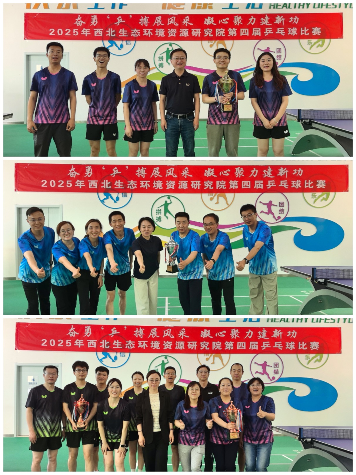 經(jīng)過緊張激烈的角逐,最終沙漠與沙漠化研究室代表隊獲得冠軍,文獻(xiàn)情報中心代表隊獲得亞軍,凍土與寒區(qū)工程研究室代表隊和管理部門代表隊獲得季軍。張明峰、朱強、王少影獲男子單打冠亞季軍,鄧雅文、董麗蘋、尤哲敏獲女子單打冠亞季軍。