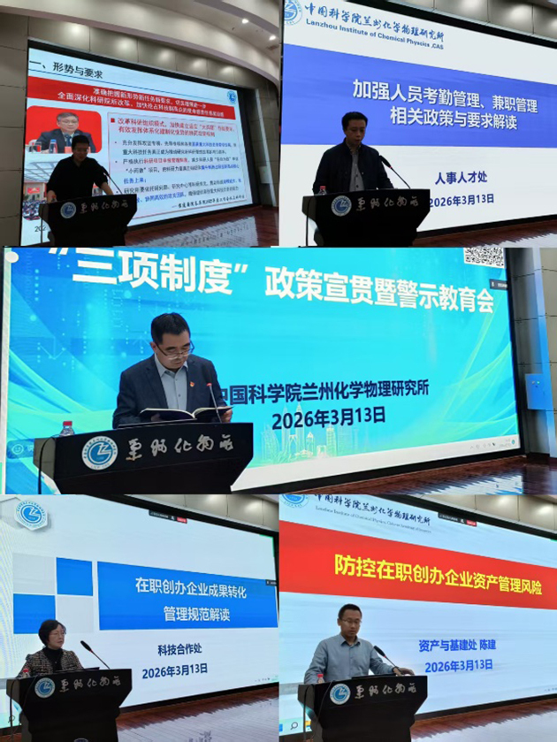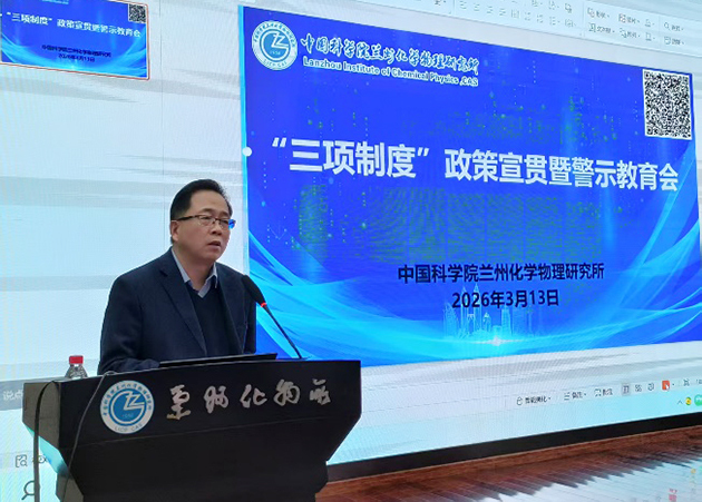 為進一步加強科研項目申報管理、人員兼職管理和崗位管理等“三項制度”的執(zhí)行和有效監(jiān)管,3月13日,中國科學(xué)院蘭州化學(xué)物理研究所舉辦“三項制度”政策宣貫暨警示教育會。