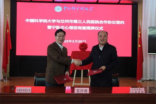 儀式上,國科大心理中心肖斌介紹了國科大學(xué)生心理健康工作開展有關(guān)情況。與會有關(guān)領(lǐng)導(dǎo)分別代表國科大與蘭州市第三人民醫(yī)院共同簽訂了合作協(xié)議,并共同為心理咨詢室揭牌。