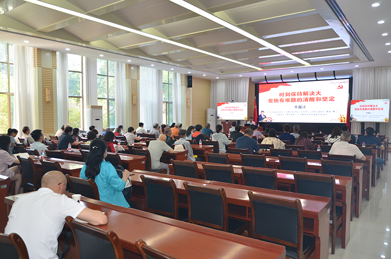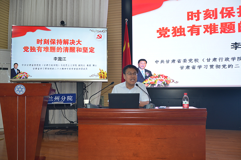 會(huì)議邀請(qǐng)了甘肅省委黨校馬克思主義學(xué)院副院長李龍江教授作《時(shí)刻保持解決大黨獨(dú)有難題的清醒和堅(jiān)定》專題輔導(dǎo)報(bào)告。報(bào)告圍繞“把握大黨獨(dú)有難題的原因和表現(xiàn)”“明確提出大黨獨(dú)有難題的重大意義”“總結(jié)解決大黨獨(dú)有難題的歷史經(jīng)驗(yàn)”“以自我革命精神破解大黨獨(dú)有難題”四個(gè)方面進(jìn)行了全面細(xì)致的講解,從新時(shí)代新征程黨和國家事業(yè)發(fā)展全局的高度,分析大黨獨(dú)有難題的形成原因、主要表現(xiàn)和破解之道。報(bào)告高屋建瓴、內(nèi)涵豐富,思路清晰、分析透徹,既有深邃系統(tǒng)的理論闡釋,又有大量鮮活的實(shí)踐案例,對(duì)認(rèn)真貫徹落實(shí)習(xí)近平新時(shí)代中國特色社會(huì)主義思想具有很強(qiáng)的指導(dǎo)意義。