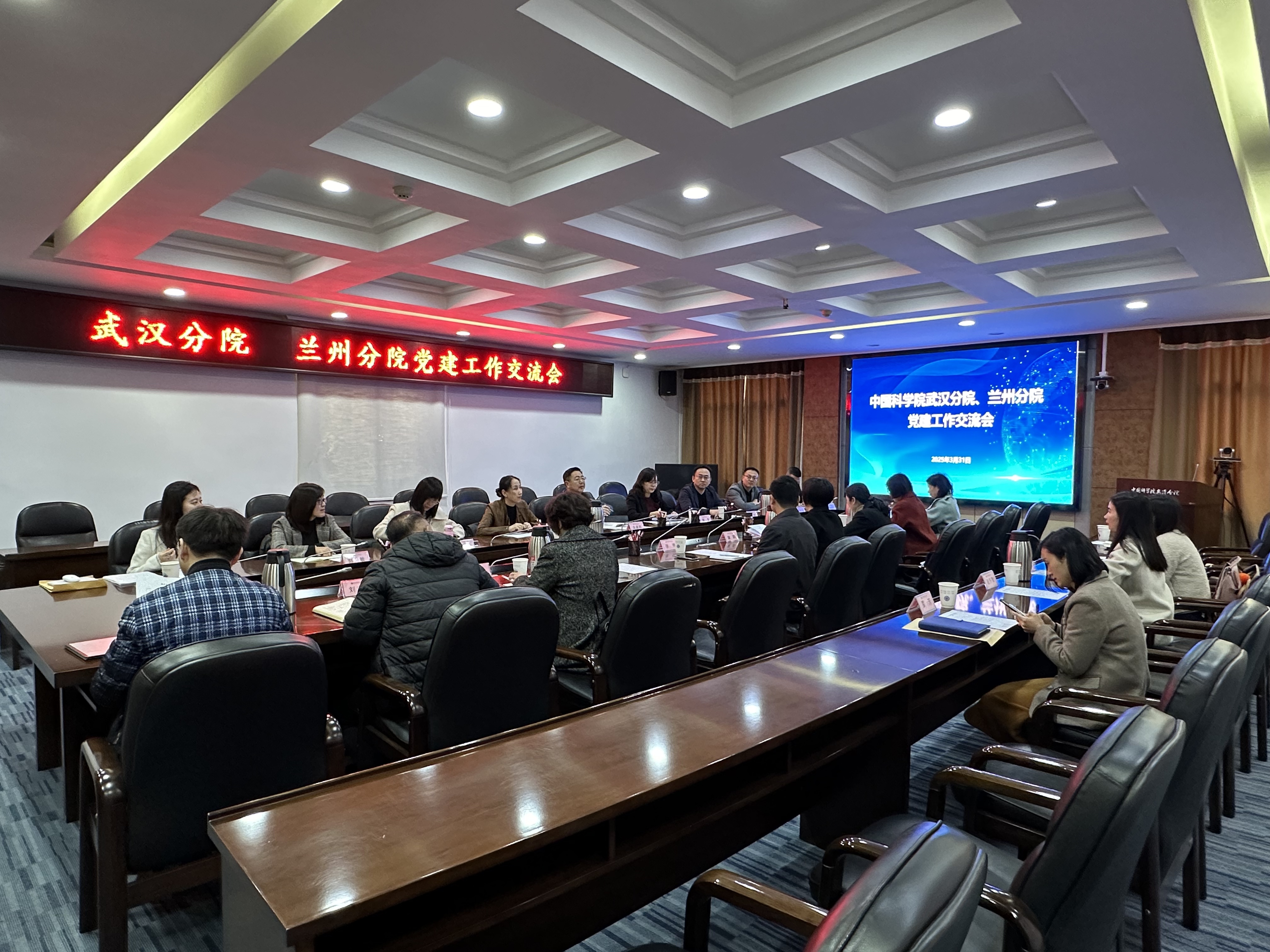 為促進(jìn)黨建工作經(jīng)驗(yàn)互學(xué)互鑒,進(jìn)一步提升黨建工作質(zhì)量,3月31日至4月1日,中國(guó)科學(xué)院蘭州分院分黨組成員、紀(jì)檢組組長(zhǎng)吳建剛帶領(lǐng)蘭州分院系統(tǒng)黨辦主任、黨務(wù)干部與武漢分院開(kāi)展黨建工作調(diào)研交流。武漢分院、蘭州分院系統(tǒng)各單位黨辦主任及黨務(wù)干部20余人參加黨建工作交流會(huì),會(huì)議由武漢分院分黨組副書(shū)記曾靜主持。