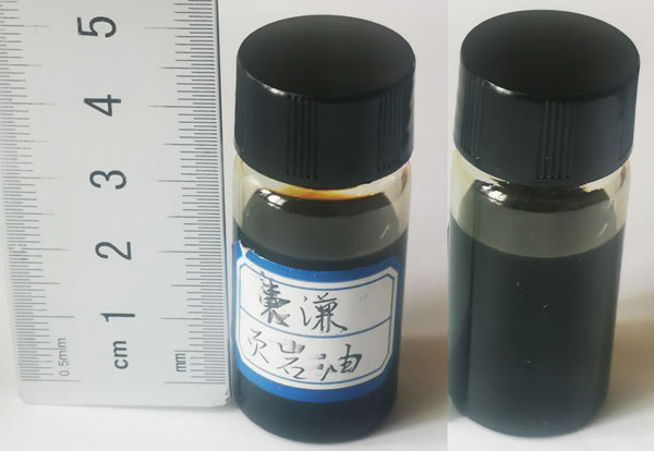 中國科學(xué)院青海鹽湖研究所馬海州研究員研究團隊,多年來持續(xù)在青海省玉樹州囊謙縣含鹽盆地開展研究工作,由于油-鹽共生是普遍的地質(zhì)現(xiàn)象,在考察古近紀(jì)貢覺組含鹽地層過程中,課題組在囊謙盆地多處發(fā)現(xiàn)了厚層優(yōu)質(zhì)油頁巖,采集的油頁巖樣品可直接點燃(圖1)。近日,課題組自主設(shè)計了油頁巖干餾的實驗裝置,并在干餾實驗中成功獲得了頁巖油(圖2),目前利用青藏高原的油頁巖開展干餾實驗研究國內(nèi)外尚未見報道。干餾所獲得的頁巖油經(jīng)中國科學(xué)院西北生態(tài)環(huán)境資源研究院油氣研究中心吳應(yīng)琴研究員和青海大學(xué)祁昭林博士分析,其族分為瀝青質(zhì)占0.53%、飽和烴占18.83%、芳烴占12.83%、非烴占67.67%,與我國撫順、茂名和美國綠河及愛沙尼亞的油頁巖干餾頁巖油類似。頁巖油經(jīng)過加工精制,除了可以得到汽油、柴油、煤油外,還可以獲得石蠟、酚類等化工副產(chǎn)品。