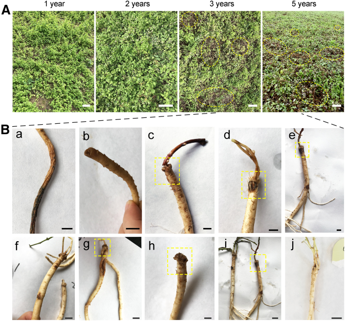 黃芪和黨參是重要的道地隴藥。甘肅是黃芪的主產(chǎn)區(qū),年產(chǎn)量占全國(guó)的50%以上,其中隴西被稱為“黃芪之鄉(xiāng)”,也是國(guó)家地理標(biāo)志產(chǎn)區(qū)。黨參2018年被衛(wèi)健委納入藥食同源目錄,甘肅定西的白條黨參總產(chǎn)量約占全國(guó)的70%以上,具有地區(qū)標(biāo)志的道地性。隨著市場(chǎng)需求的增加和土地資源的限制,連作的種植模式已成為該地區(qū)的主要栽培方式。近年來(lái)連作障礙問(wèn)題嚴(yán)重困擾黃芪和黨參等中藥材的種植,造成產(chǎn)量下降和品質(zhì)降低等問(wèn)題,導(dǎo)致嚴(yán)重的經(jīng)濟(jì)損失。