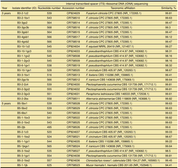 表1 連作黨參根際真菌菌株的分離和鑒定。