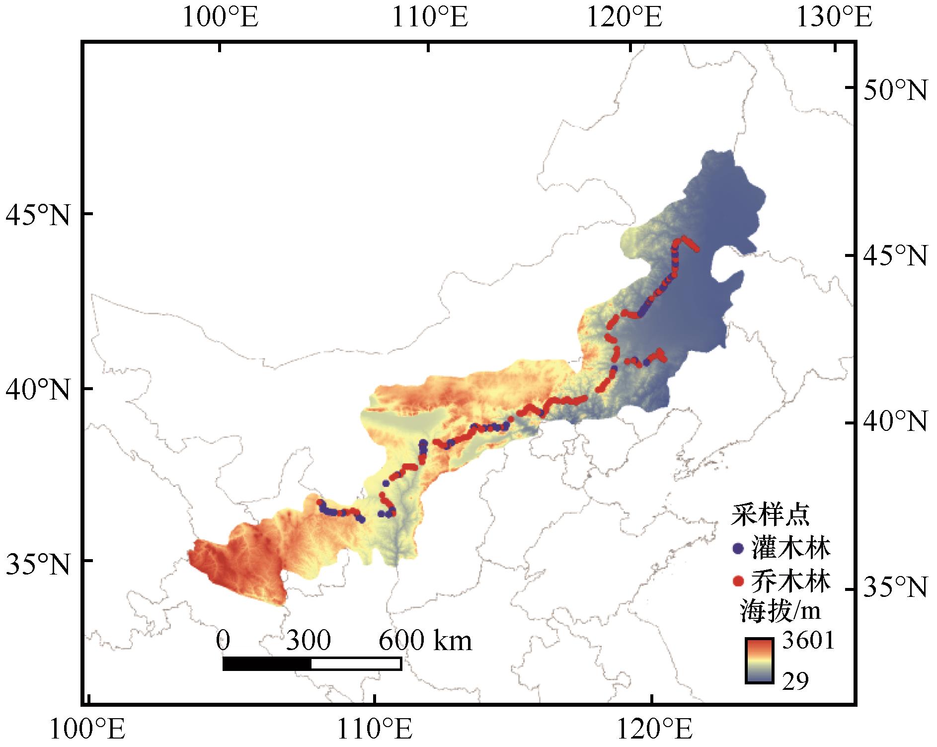 圖1 北方農(nóng)牧交錯帶人工林樣點分布