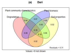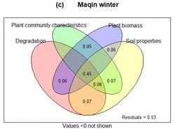 達日冬季草場(a)、瑪沁夏季草場(b)及瑪沁冬季草場(c)高寒草甸土壤微生物碳氮磷含量及其化學計量比的方差分解分析