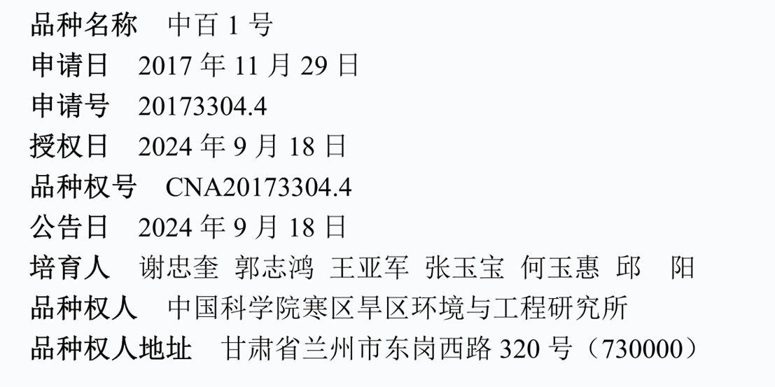 近日,中國科學(xué)院西北生態(tài)環(huán)境資源研究院蘭州生態(tài)農(nóng)業(yè)試驗研究站(簡稱“蘭州農(nóng)業(yè)站”)謝忠奎研究員團(tuán)隊自主選育的“中百1號”蘭州百合新品種上榜農(nóng)業(yè)農(nóng)村部2024年第826號授予植物新品種權(quán)名單。這是我國首個被授予植物新品種權(quán)的優(yōu)質(zhì)高產(chǎn)食用百合品種,同時也是西北研究院首次獲植物品種權(quán)授權(quán)。