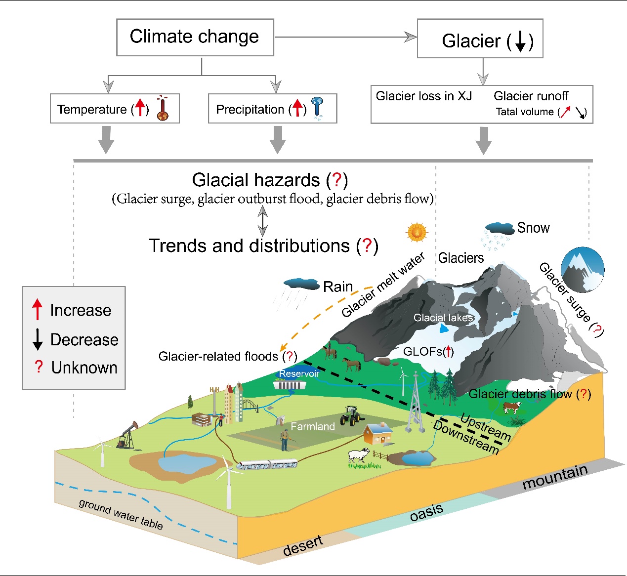 該成果以Glacial hazards change in Xinjiang over the past seven decades: Spatiotemporal patterns and trends為題發(fā)表在Quaternary Science Reviews上。西北研究院博士研究生王梅霞為論文第一作者,上官冬輝研究員為通訊作者。該研究成果獲得第二次青藏高原綜合科學(xué)考察研究、國(guó)家自然科學(xué)基金項(xiàng)目、甘肅省科技計(jì)劃項(xiàng)目和甘肅省青年科技計(jì)劃項(xiàng)目聯(lián)合資助。