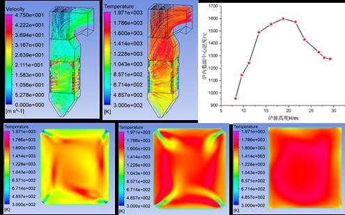 近期,團隊在華能蘭州西固熱電有限公司和西安熱工研究院的大力支持下,首先完成了165MW機組的數(shù)值模擬,結(jié)果表明,四角切圓型鍋爐爐內(nèi)燃燒煙氣溫度分布曲線呈現(xiàn)正態(tài)-拋物線狀態(tài),中間燃燒區(qū)域溫度高,爐底及爐膛出口溫度偏低,最高燃燒溫度始終分布在主燃燒與 SOFA之間,因此重點噴涂區(qū)域為主燃燒區(qū)域和 SOFA 區(qū)域。