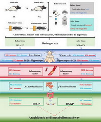 雌雄小鼠應(yīng)激腦-腸軸調(diào)控差異示意圖