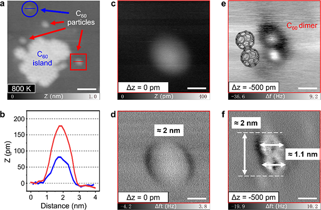 圖3. nc-AFM表征C60二聚體。