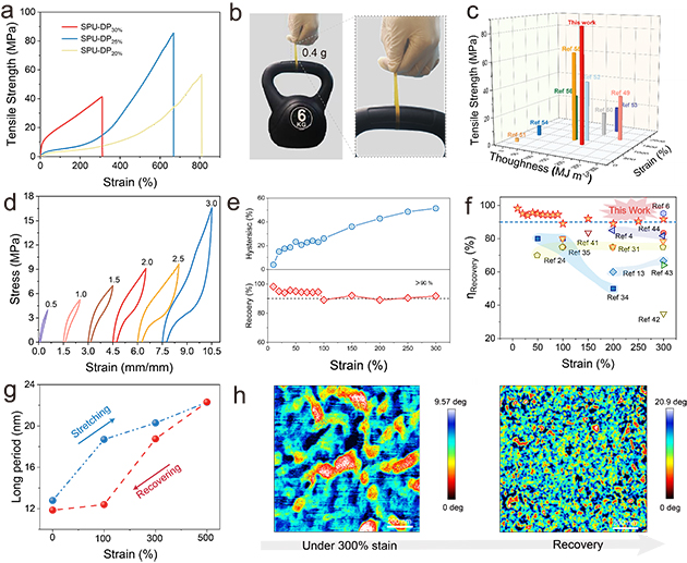 圖3. 聚氨酯彈性體的力學(xué)強(qiáng)度、彈性以及彈性恢復(fù)機(jī)制