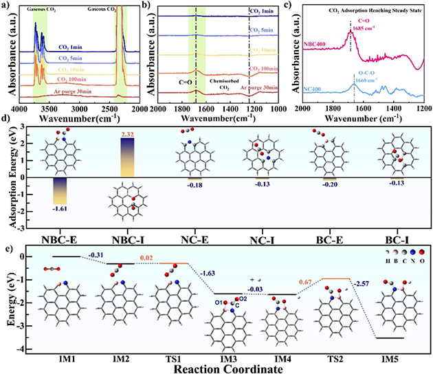 圖2.理論計算結(jié)合原位紅外揭示N-B位點活化轉(zhuǎn)化CO2新機制
