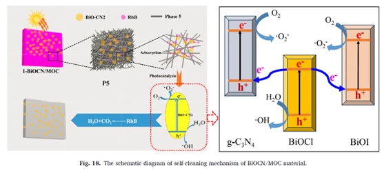近日,中國科學院青海鹽湖研究所鎂質膠凝材料科研團隊成功研發(fā)出一種新型光催化水泥基復合材料,通過高溫煅燒與微波輔助溶劑熱法合成 g-C?N?/BiOCl?.?I?.?復合光催化劑(BiO-CN2),并創(chuàng)新性地將其與氯氧鎂水泥(MOC)復合,成功制備出高性能BiOCN/MOC光催化復合材料。該技術有效解決傳統光催化劑可見光響應弱、電荷載流子復合快的痛點,同時顯著提升基體性能:4%催化劑摻量下,復合材料28天抗壓強度較純MOC提升20.99%,對RhB染料展現出高效吸附-化學協同降解能力,自清潔性能與結構穩(wěn)定性同步優(yōu)化。此研究為光催化水泥基材料的性能突破提供了創(chuàng)新技術路徑,為建筑領域綠色環(huán)保功能材料的規(guī)?;瘧玫於岁P鍵基礎。