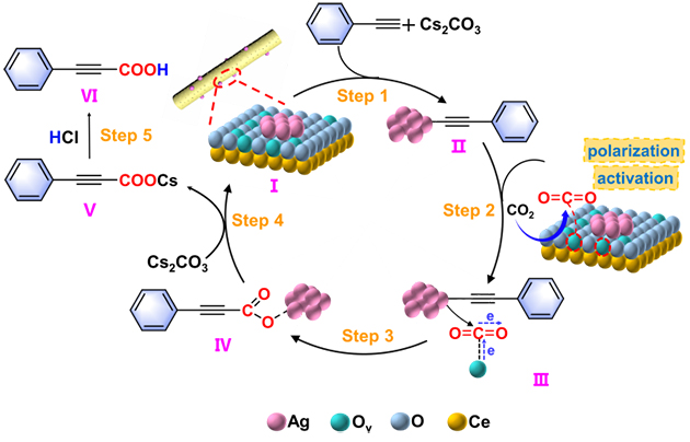 圖2. Ag/CeO2催化CO2與端炔發(fā)生羧化反應(yīng)的機(jī)理