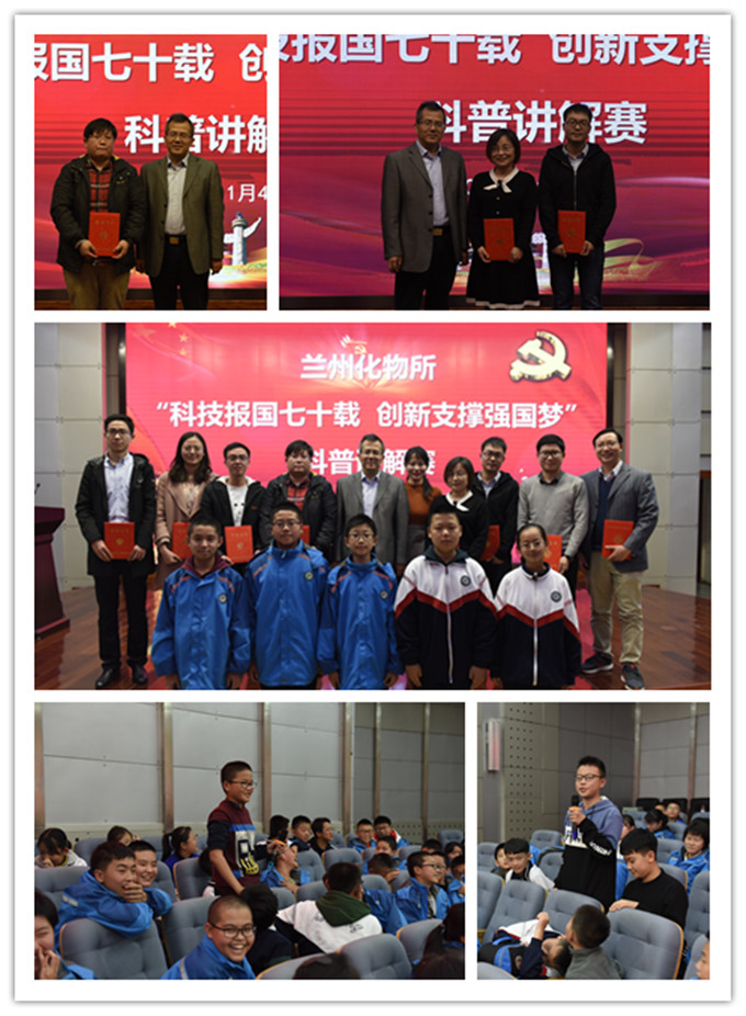 為慶祝中華人民共和國(guó)成立70周年和中國(guó)科學(xué)院建院70周年,弘揚(yáng)科學(xué)精神,11月4日,中國(guó)科學(xué)院蘭州化學(xué)物理研究所舉辦了“科技報(bào)國(guó)七十載創(chuàng)新支撐強(qiáng)國(guó)夢(mèng)”科普講解賽。本次講解大賽邀請(qǐng)中科院蘭州分院中學(xué)七年級(jí)師生近300多人到場(chǎng)聆聽(tīng)。研究所共有4名青年科研人員和4名研究生參加比賽,5名學(xué)生代表和參賽選手共同擔(dān)任評(píng)委。