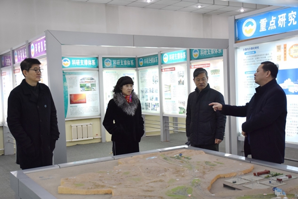 劉劍、李靜一行還參觀了寒旱區(qū)科技創(chuàng)新館及科研園區(qū),辦公室主任張景光介紹了西北研究院發(fā)展歷程、組織機(jī)構(gòu)、人才隊(duì)伍等基本情況。