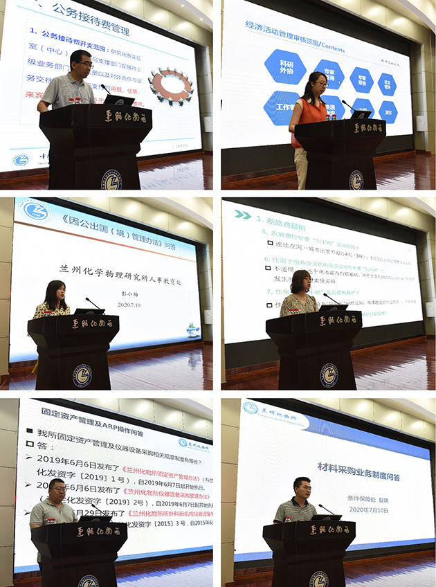 為繼續(xù)深化為科研人員減負(fù),進(jìn)一步解決科研經(jīng)費“報銷繁”問題,使規(guī)章制度真正發(fā)揮促進(jìn)科學(xué)、規(guī)范化管理的作用,7月10日上午,中國科學(xué)院蘭州化學(xué)物理研究所組織開展了經(jīng)濟(jì)活動規(guī)章制度宣講培訓(xùn),各實驗室(中心)秘書、科研財務(wù)助理、管理部門相關(guān)人員約100人參加培訓(xùn)會。青島中心、蘇州研究院通過視頻參會。