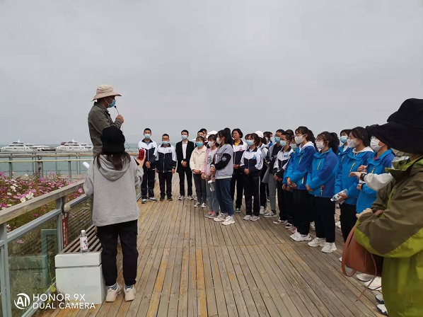 在為期兩天的行程中,同學(xué)們先后參觀了青海湖和海北原子城紀(jì)念館,在老師的指導(dǎo)下學(xué)習(xí)如何樹立自信心,增強(qiáng)合作意識,了解與青藏高原相關(guān)的地質(zhì)地理知識,感受兩彈一星老科學(xué)家們無私奉獻(xiàn)和創(chuàng)新報國的精神等。此外,大家還分組團(tuán)隊合作自己設(shè)計團(tuán)隊游戲,展示個人才藝,氣氛融洽而熱烈。尤其是在展示個人才藝環(huán)節(jié)還發(fā)生了一個有趣而暖心的小插曲,同學(xué)們的歌舞表演不僅吸引了周圍游客的關(guān)注,也引起了一位從四川九寨溝遠(yuǎn)道而來的藏族歌手的注意,這位歌手被同學(xué)們的表演所感染,用他特有的嗓音欣然為同學(xué)們演唱了他自己原創(chuàng)的歌曲,并鼓勵同學(xué)們努力學(xué)習(xí),成為對國家對社會有用的人才。