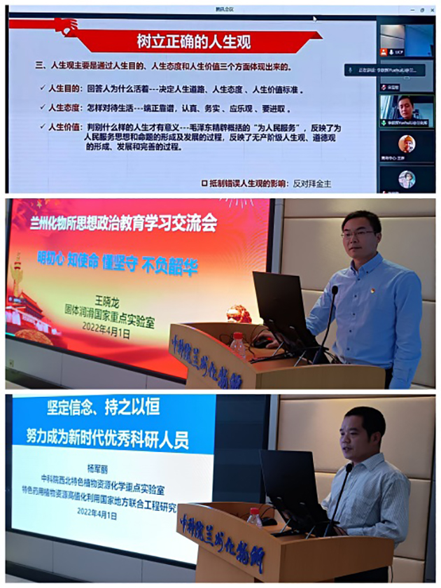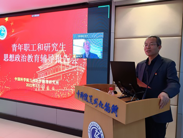 為深入貫徹落實(shí)習(xí)近平新時(shí)代中國特色社會(huì)主義思想和黨的教育方針,進(jìn)一步加強(qiáng)青年職工和研究生思想政治工作,4月1日,中國科學(xué)院蘭州化學(xué)物理研究所舉辦了青年職工和研究生思想政治教育線上輔導(dǎo)報(bào)告會(huì),青年職工和研究生260余人參加報(bào)告會(huì)。副所長張俊彥出席報(bào)告會(huì)并講話。人事教育處、黨委辦公室負(fù)責(zé)人參加會(huì)議。