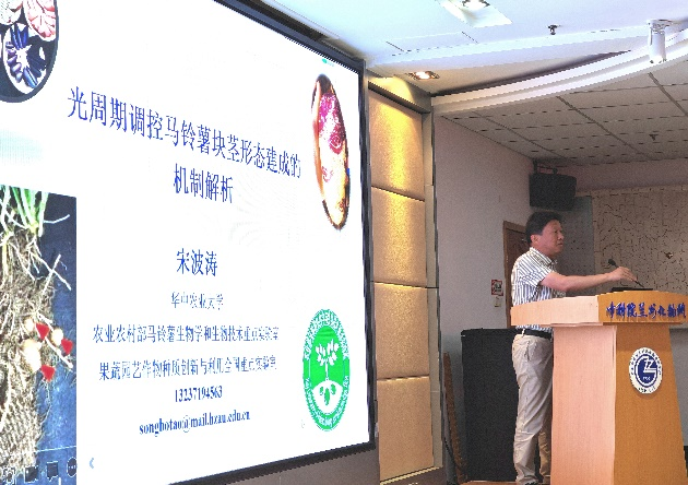 6月9日,農(nóng)業(yè)農(nóng)村部馬鈴薯生物學(xué)與生物技術(shù)重點(diǎn)實(shí)驗(yàn)室主任、國家馬鈴薯產(chǎn)業(yè)技術(shù)體系“加工型品種改良”崗位科學(xué)家、華中農(nóng)業(yè)大學(xué)宋波濤教授應(yīng)邀到中國科學(xué)院蘭州化學(xué)物理研究所進(jìn)行學(xué)術(shù)交流,并作了題為“光周期調(diào)控馬鈴薯塊莖形態(tài)建成的機(jī)制解析”的學(xué)術(shù)報(bào)告。國家馬鈴薯產(chǎn)業(yè)技術(shù)體系相關(guān)崗位專家,蘭州化物所、蘭州大學(xué)、甘肅農(nóng)業(yè)大學(xué)相關(guān)科研人員參加報(bào)告會(huì)。