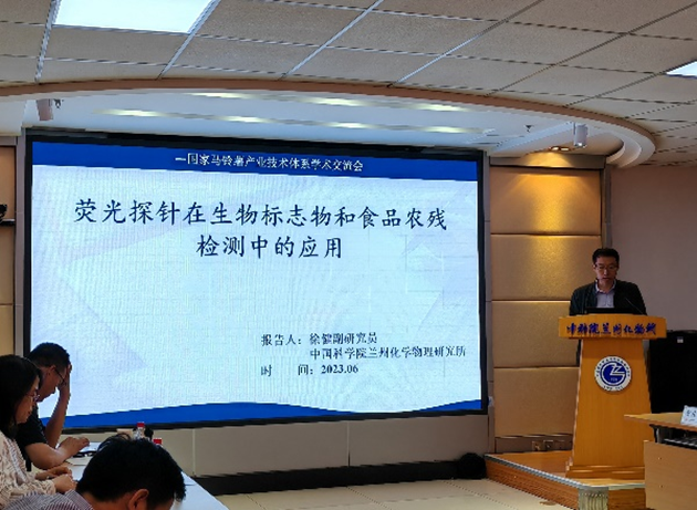 宋波濤教授介紹了光周期信號調(diào)控馬鈴薯開花與結(jié)薯的分子機(jī)制,提出了研究過程中發(fā)現(xiàn)的新問題。蘭州化物所環(huán)境材料與生態(tài)化學(xué)研究發(fā)展中心材料與分離分析課題組徐建副研究員作了題為“熒光探針在生物標(biāo)志物和食品農(nóng)殘檢測中的應(yīng)用”的報(bào)告,介紹了熒光探針的發(fā)展歷程、生物標(biāo)記物的檢測及熒光探針在食品農(nóng)殘中的應(yīng)用。