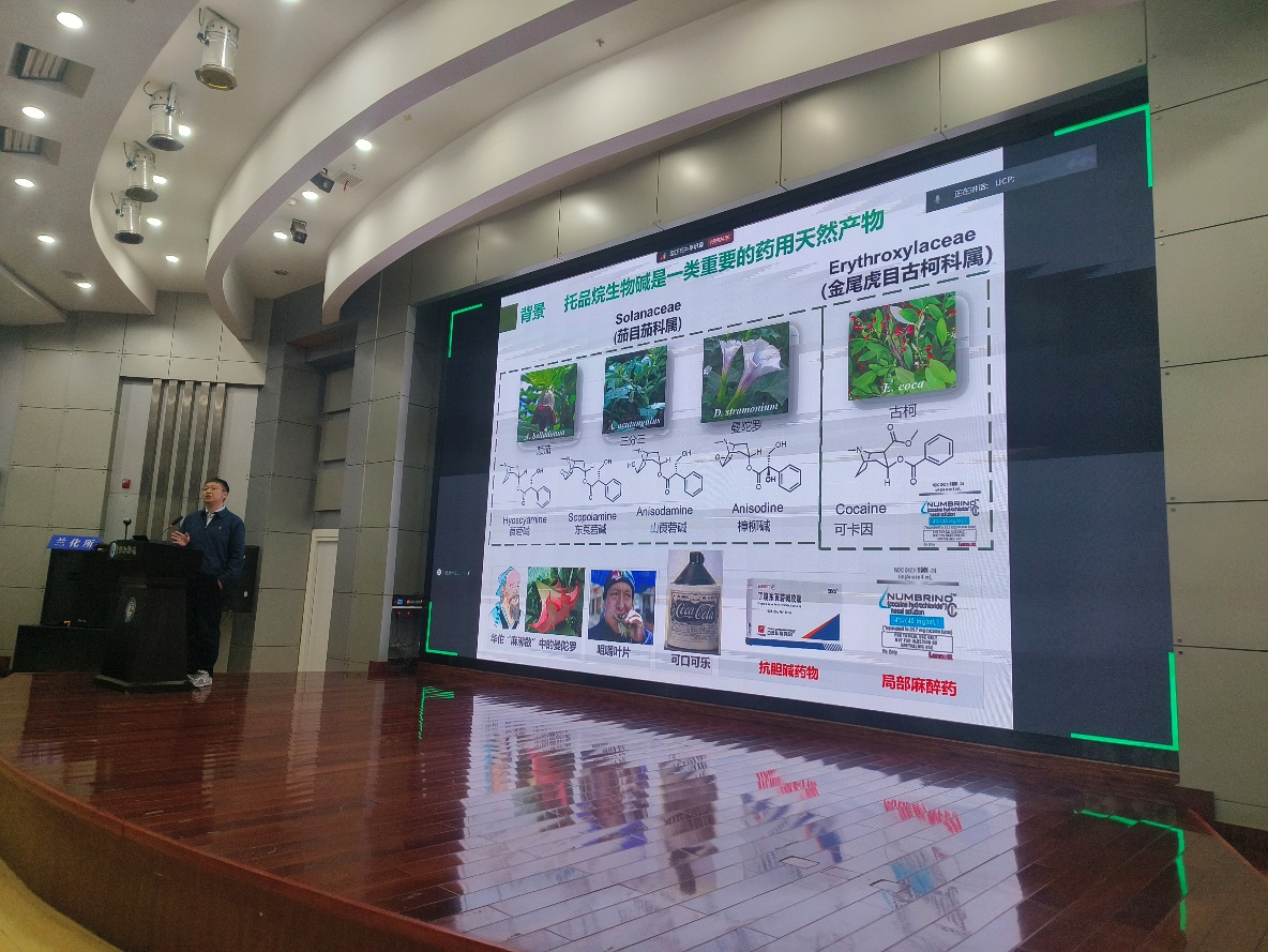 黃勝雄作了題為“植物天然藥物的生物合成及資源創(chuàng)新利用”的報(bào)告,介紹了其課題組在植物托品烷生物堿(莨菪堿和可卡因)和黃芪三萜的生物合成途徑解析的相關(guān)研究。講解了如何將基礎(chǔ)研究的成果利用合成生物學(xué)進(jìn)行植物藥產(chǎn)業(yè)的升級(jí)和創(chuàng)新。