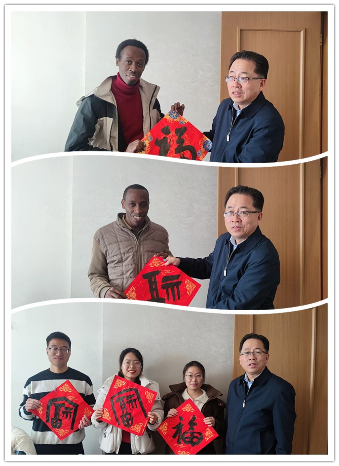 蘭州化物所黨委書記王齊華、副所長(zhǎng)石峰了解了外籍導(dǎo)師在研究所的工作生活情況,聽(tīng)取了對(duì)研究生教育工作的意見(jiàn)建議,詢問(wèn)了同學(xué)們的留所原因和假期安排,叮囑同學(xué)們注意實(shí)驗(yàn)室安全、宿舍用電安全和交通安全等,合理安排假期生活,并向大家送上新春祝福和春節(jié)禮包,祝福大家在研究所度過(guò)一個(gè)平安、快樂(lè)、祥和的春節(jié)。