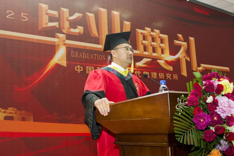 導(dǎo)師代表、原子物理中心副主任張少鋒研究員向畢業(yè)生們送上了真摯的祝福與囑托。他期望大家堅(jiān)守科學(xué)精神,既有仰望星空的探索勇氣,也有腳踏實(shí)地的務(wù)實(shí)品格,更需懷抱家國(guó)情懷與感恩之心。