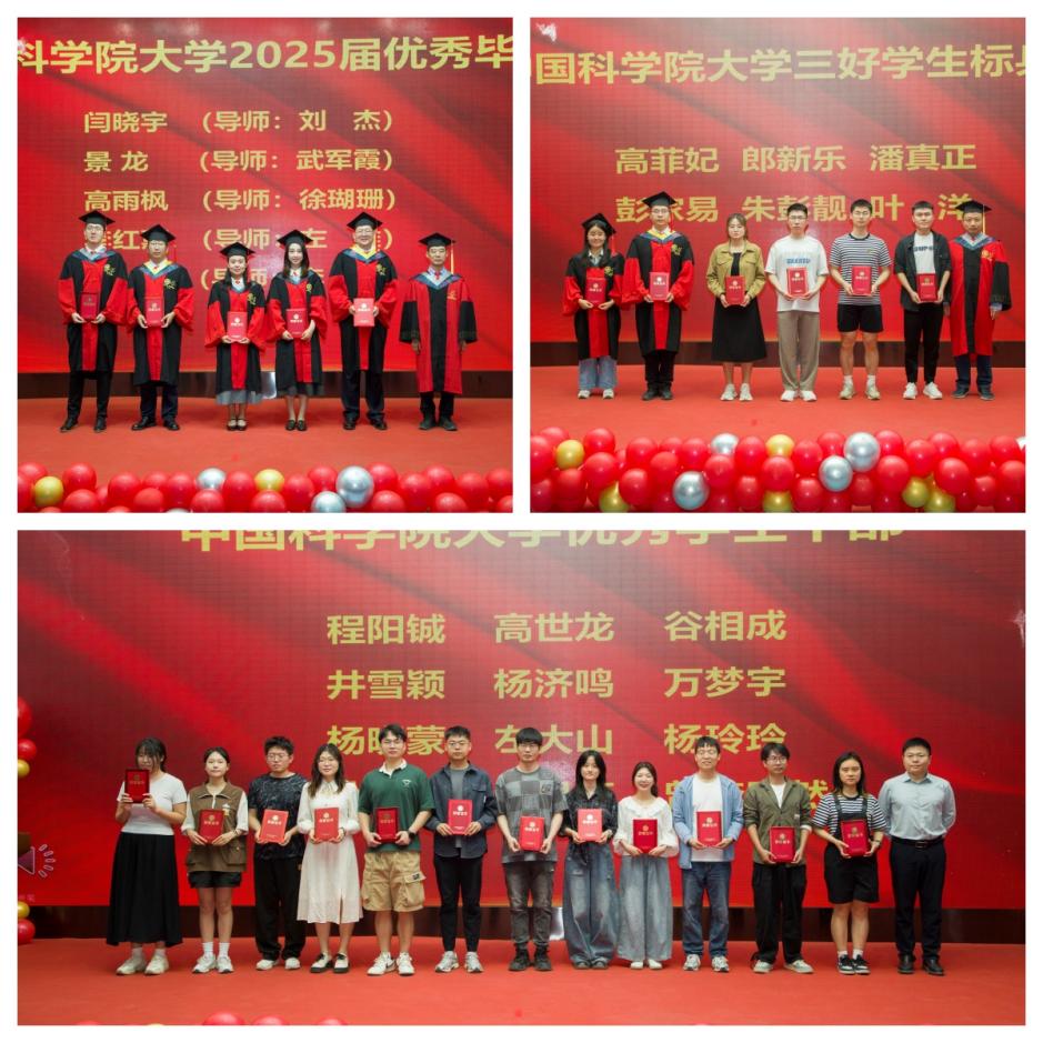 典禮上,劉作業(yè)副院長(zhǎng)、近代物理所核物理中心首席科學(xué)家張玉虎研究員、材料研究中心副主任段敬來(lái)研究員分別為優(yōu)秀畢業(yè)生、三好學(xué)生標(biāo)兵和優(yōu)秀學(xué)生干部頒發(fā)了榮譽(yù)證書。