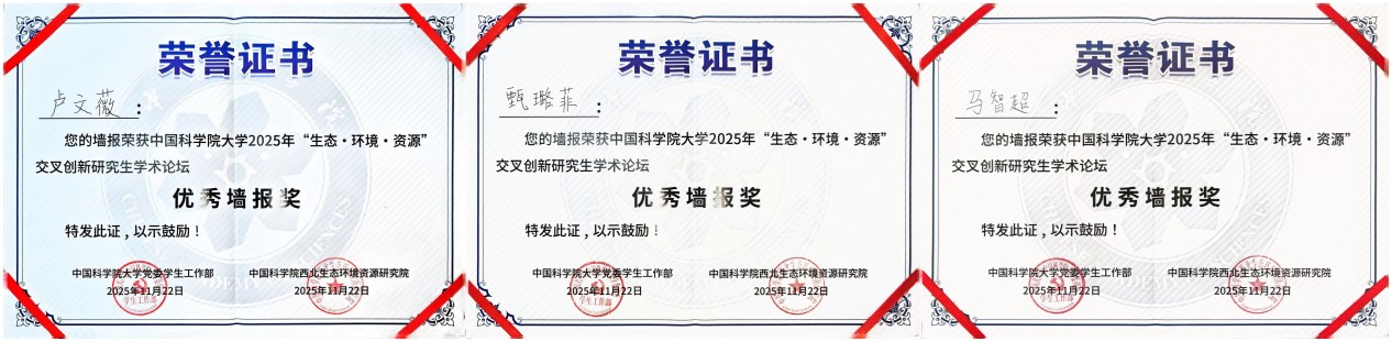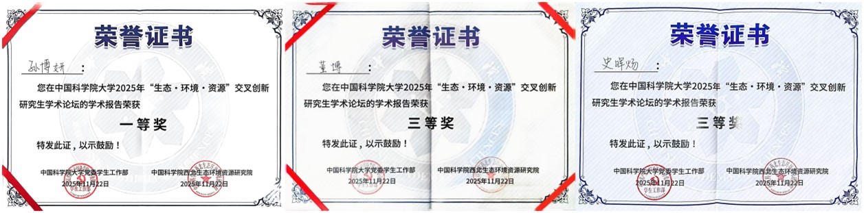 論壇設(shè)置“生態(tài)與環(huán)境領(lǐng)域組”“資源與工程領(lǐng)域組”及“弘揚(yáng)科學(xué)家精神與研究生思政教育管理研討組”三大專題板塊,聚焦國家戰(zhàn)略需求與科技前沿,推動學(xué)科融合與協(xié)同創(chuàng)新。青海鹽湖所研究生緊扣青藏高原生態(tài)安全屏障、柴達(dá)木盆地資源高效利用與環(huán)境保護(hù)等關(guān)鍵科學(xué)問題等多個(gè)方向進(jìn)行學(xué)術(shù)報(bào)告和墻報(bào)展示?,F(xiàn)場討論熱烈,學(xué)術(shù)氛圍濃厚。通過這一高水平平臺,青海鹽湖所研究生不僅展示了最新的科研進(jìn)展,更與兄弟院所建立了深入的學(xué)術(shù)聯(lián)系,為后續(xù)合作奠定了良好基礎(chǔ)。參會研究生們憑借出色表現(xiàn),成績斐然。孫博妍榮獲優(yōu)秀學(xué)術(shù)報(bào)告一等獎;董博與史暉煬榮獲優(yōu)秀學(xué)術(shù)報(bào)告三等獎;馬智超、甄璐菲、盧文薇的墻報(bào)榮獲優(yōu)秀墻報(bào)獎。